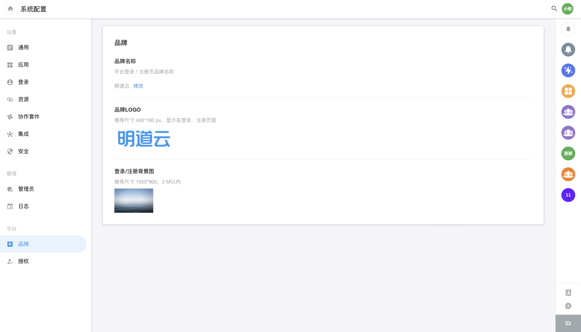 Platform Mgt is the functional module of basic configuration management and authorization management of the platform. It provides configuration and management items such as general, application, login, resource, collaboration suite, integration, security, admin, log, brand, authorization, etc. Note: See the description of [Platform Mgt] for details of the undescribed parts.