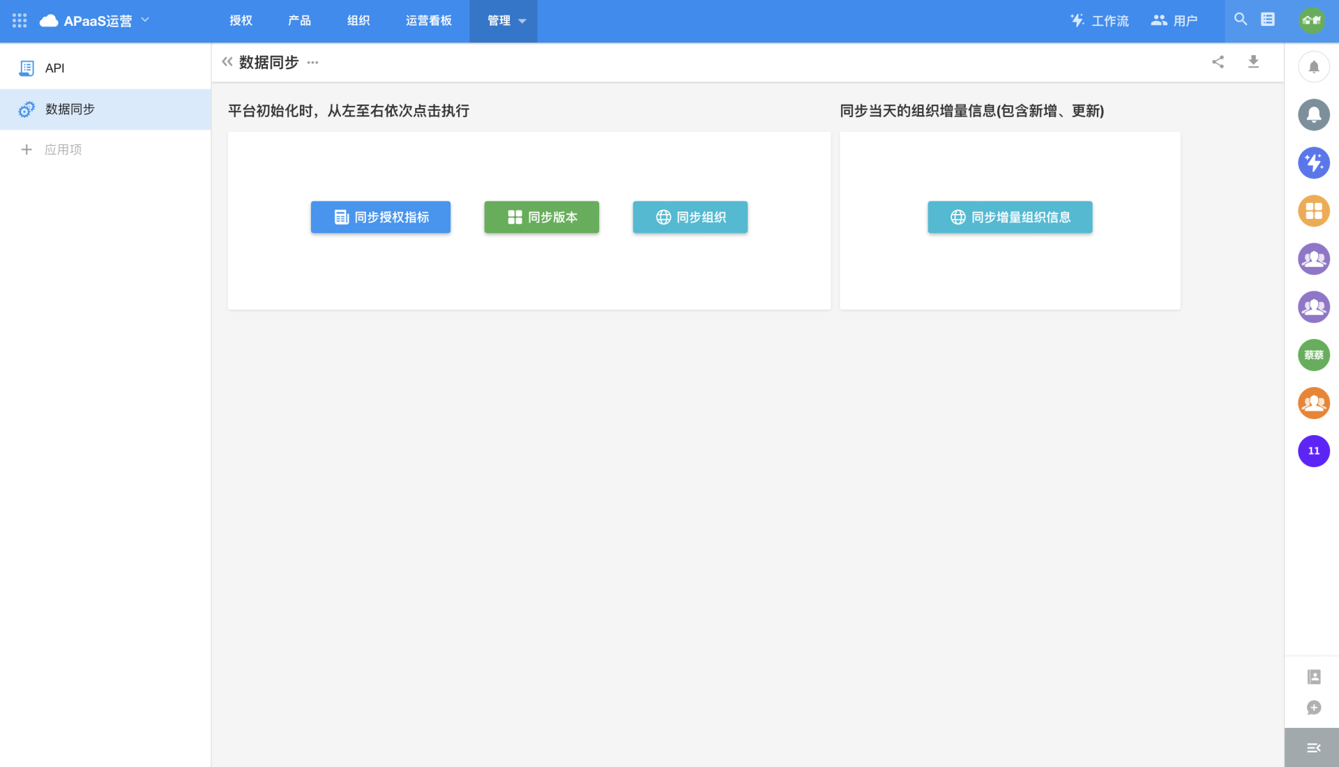After the installation and deployment of the platform, the following steps for data initialization need to be performed when entering the "APaaS Operation" application:
