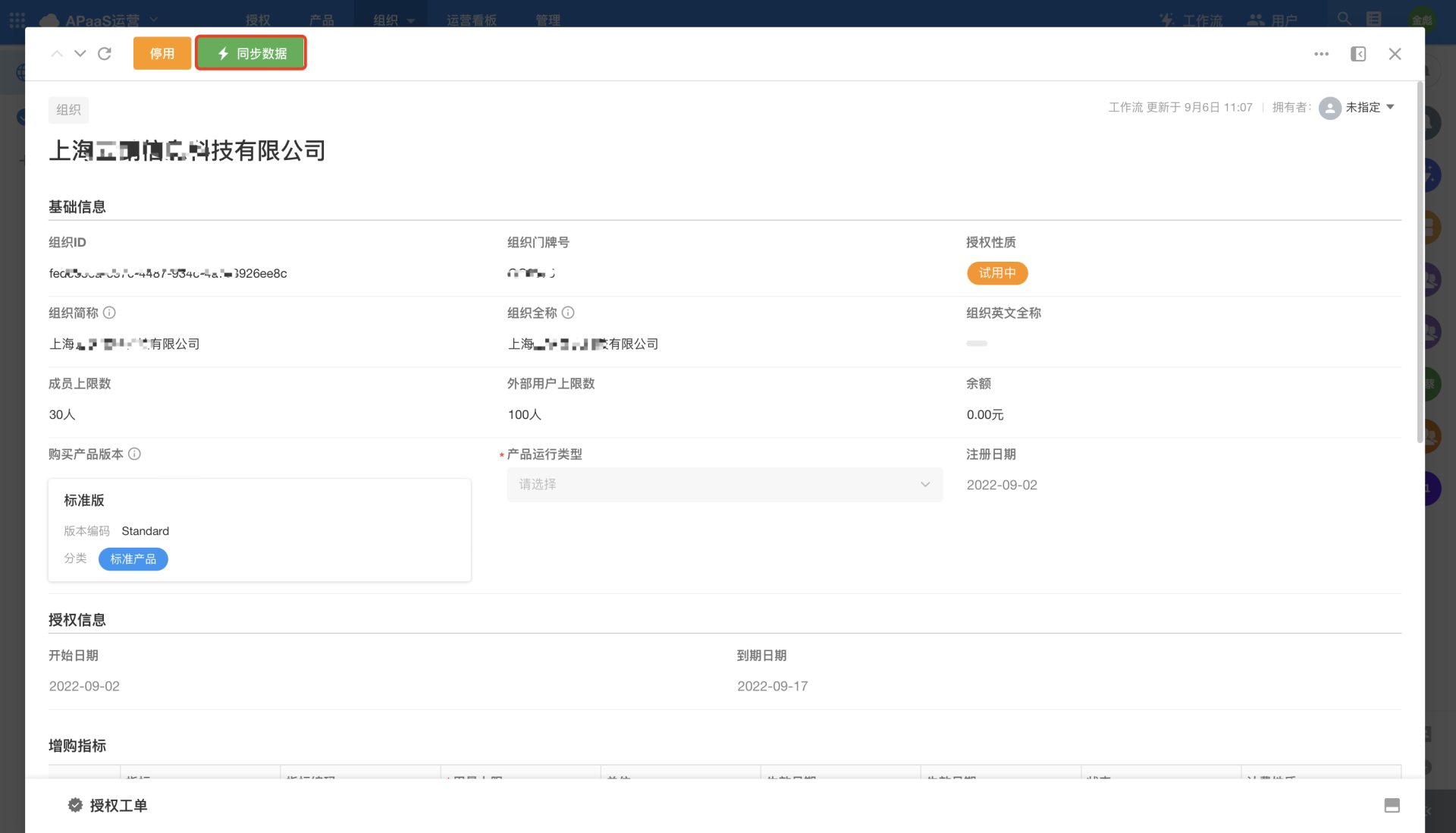 For the data in the Authorization Metrics worksheet, all the fields are read-only except for the "Status" field, which can be edited. When the platform is upgraded (adding authorization metrics), users need to synchronize manually (in the Sync Data worksheet, click "Sync Authorization Metrics"), or wait for the timed workflow "[Authorization Metrics] Data Synchronization" to synchronize automatically.