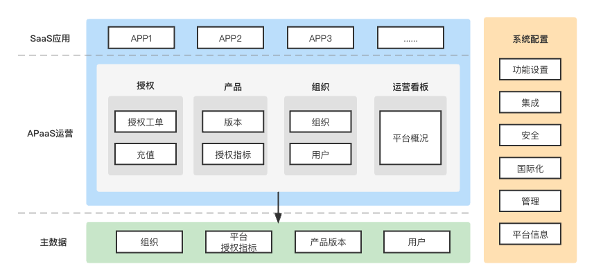 Master data: the basic master data service of the platform, including organization, authorization metrics, product edition, platform users and other basic data.