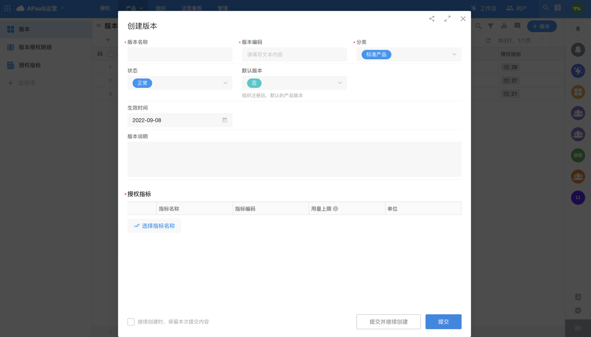 | Authorization Metrics->Usage Limit | When the authorization metric in the edition is of counting type, the operating personnel can define the usage limit of the metric. Enter "an integer greater than 0" or "unlimited", all other characters are invalid ("unlimited" means that the usage of the metric is not limited). |
